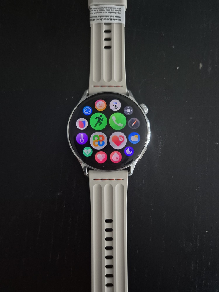 Skærmen er dækket af 2.5D safirglas. Safirglas er utroligt hårdt og meget svært at ridse, hvilket er en detalje, man sjældent ser uden for “Pro”-modeller hos andre producenter. Uret er desuden IP68-certificeret og vandtæt ned til 5 ATM, så du kan roligt tage det med i svømmehallen eller løbe en tur i styrtregn.